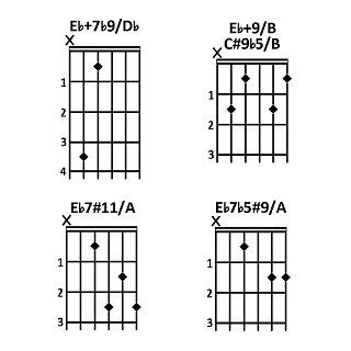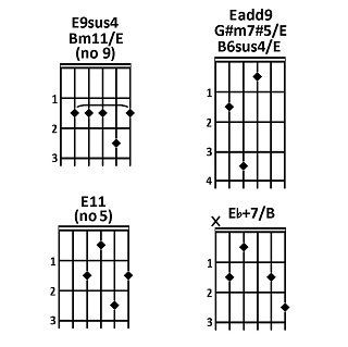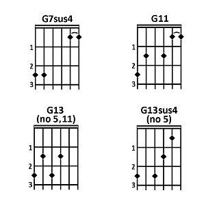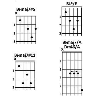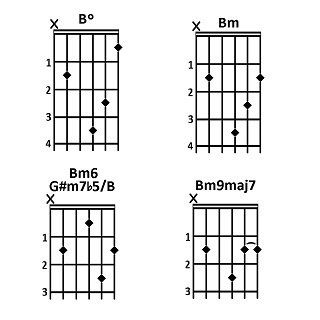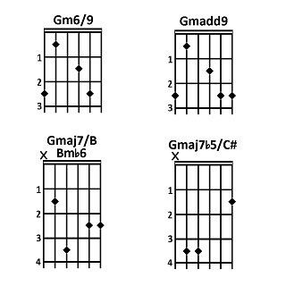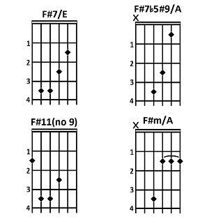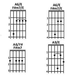 Molti di questi accordi hanno due o più nomi. Ad esempio, l'accordo di LA6 contiene le stesse note del FA#m7 (LA, DO#, MI e FA#).