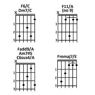 Molti di questi accordi hanno due o più nomi. Ad esempio, l'accordo di LA6 contiene le stesse note del FA#m7 (LA, DO#, MI e FA#).